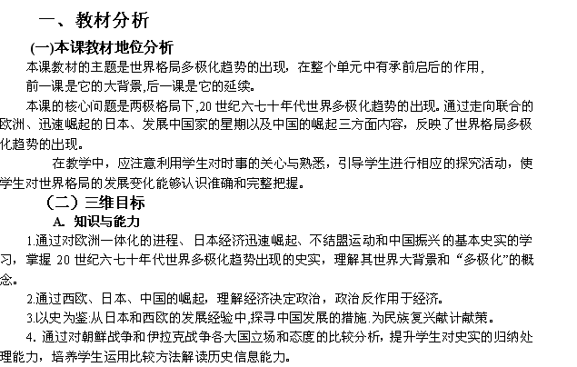 有道:2012新人教历史必修1说课稿:26 世界多极化趋势的出现