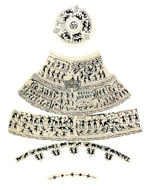 谷歌:高中历史图片素材:战国嵌错赏功宴乐壶上的水陆攻战纹饰