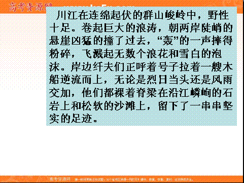 百度:《KS5U精品原创》2012届高二语文课件:1.5《川江号子》(新人教版选修《中国现代诗歌散文欣赏》)