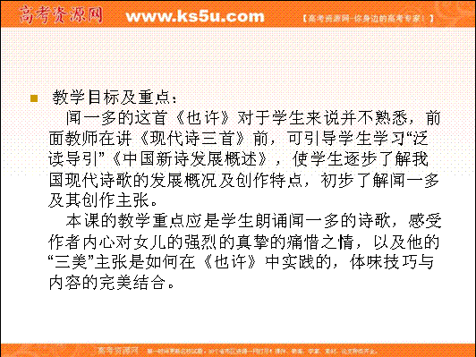 百度:《KS5U精品原创》2012届高二语文课件:2.2《也许》(新人教版选修《中国现代诗歌散文欣赏》)
