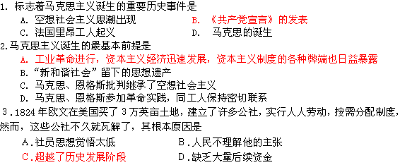 百度:浙江省岱山县大衢中学2012高一历史 专题八 解放人类的阳光大道 一、三课同步练习(人民版必修1)