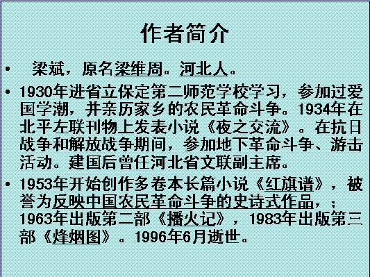有道:《KS5U精品原创》2012届高二语文课件:9.17《红旗谱》(新人教版选修《中国小说欣赏》)