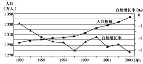 下图是某城市人口数量和人口自然增长率变化图。读图,回答1~2题。