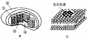 解析:甲图中的①②③和④分别是叶绿体内膜、外膜、基粒和基质,乙所示的膜结构