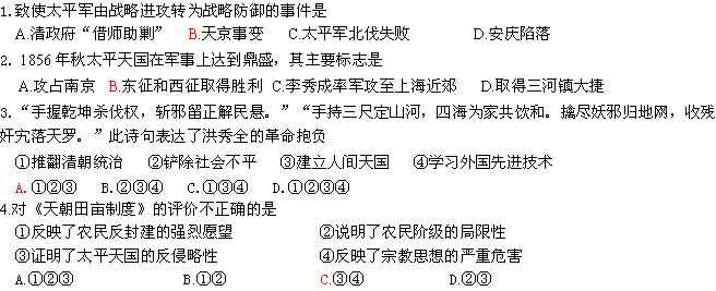 百度:浙江省岱山县大衢中学2012高一历史 专题三 近代民主革命 单元练习(人民版必修1)