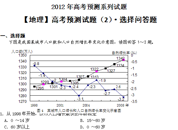 谷歌:《地理》2012高考预测试题(2)选择问答题