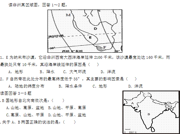 百度:青海省湟川中学第二分校2011-2012学年高二4月月考文科综合试题(无答案)
