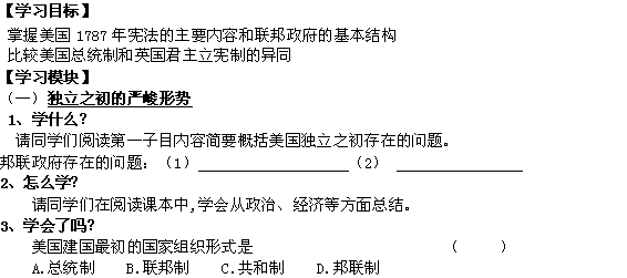 有道:2012高一历史导学案:08 美国联邦政府建立(新人教必修1)