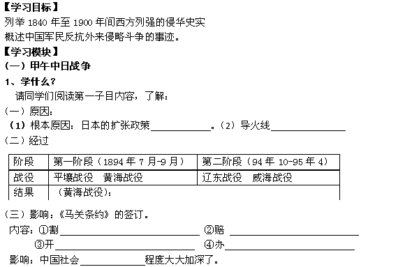 有道:2012高一历史导学案:12 甲午中日战争和八国联军侵华(新人教必修1)