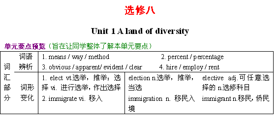 谷歌:高二同步备课资料:Unit 1 A land of diversity 语言要点 (新人教版选修8)