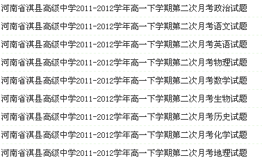 谷歌:河南省淇县高级中学2011-2012学年高一下学期第二次月考试题(9科9份)