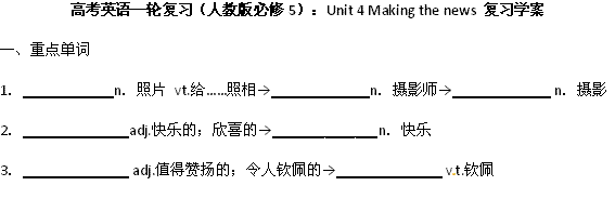 有道:(新人教版必修5)高二英语同步单元复习学案:unit4 Making the news(学生版)
