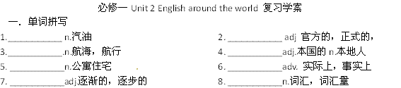 有道:(新人教版必修1)高一英语同步单元复习学案:Unit2 English around the world(学生版)
