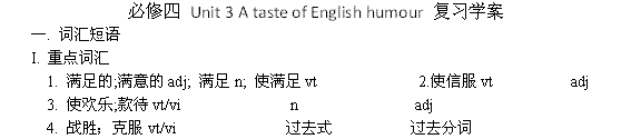 谷歌:(新人教版必修4)高一英语同步单元复习学案:Unit3 A taste of English humour(学生版)