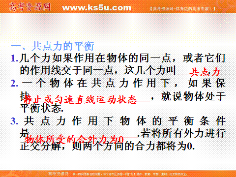 有道:福建省2013届新课标高考物理一轮总复习课件:第2章第4讲 共点力的平衡