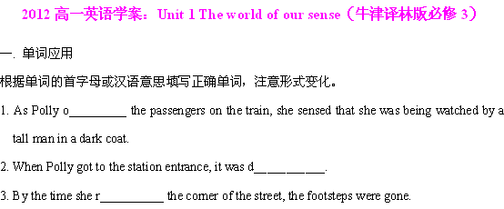 谷歌:2012高一英语学案:Unit 1 The world of our sense(牛津译林版必修3)