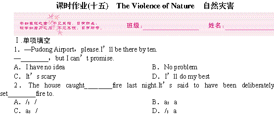 百度:高一英语同步测试及答案解析:Module 3 The Violence of Nature(外研版必修3)