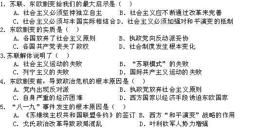 百度:世界近代现代史(下)第6-7章测试题(旧人教版)