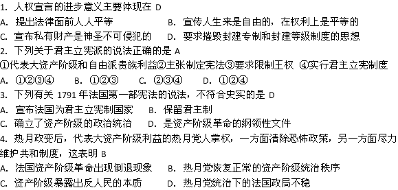 百度:《KS5U独家》内蒙古新人教版历史2012届高三单元测试38:选修2第五单元 法国民主力量与专制势力的斗争