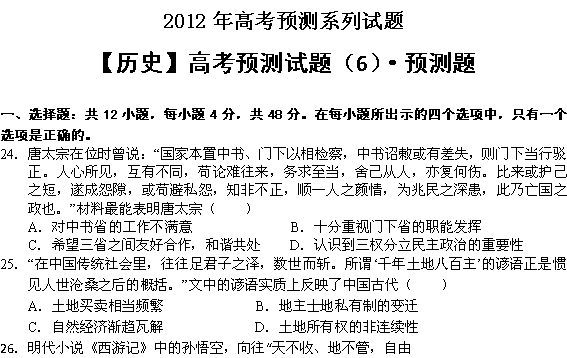 谷歌:《历史》高考预测试题(6)预测题