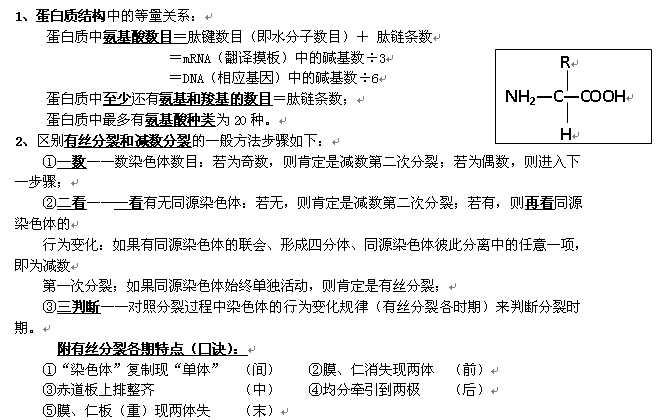 有道:2012高考生物重要规律性关系及公式归纳