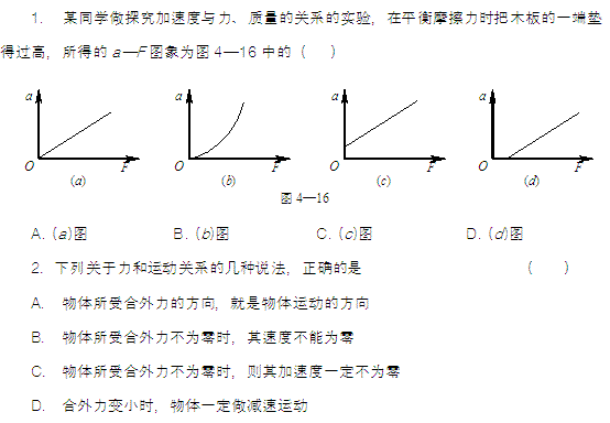 百度:《KS5U原创》高一物理第四章第二节4.2实验:探究加速度与力、质量关系同步练习(新人教版必修1)