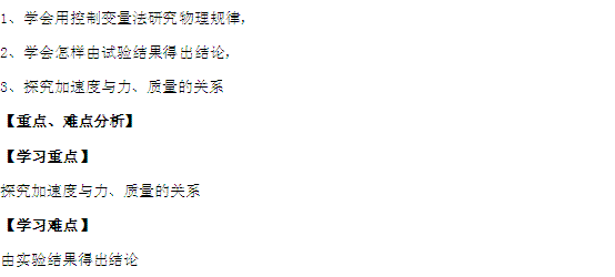 百度:《KS5U原创》高一物理第四章第二节4.2实验:探究加速度与力、质量关系学案(新人教版必修1)