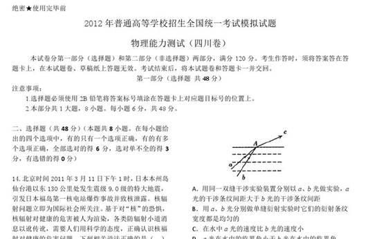 百度:2012年普通高等学校招生模拟考试物理试题(四川卷)扫描版