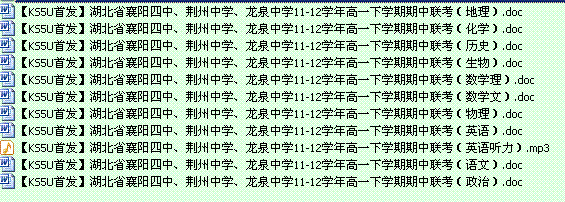 谷歌:《KS5U首发》湖北省襄阳四中、荆州中学、龙泉中学11-12学年高一下学期期中联考(全科)