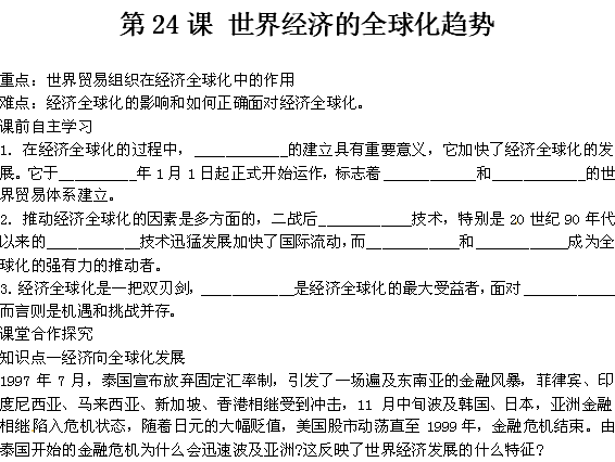2012高一历史 新人教必修2 第24课《世界经济的全球化趋势》教案2