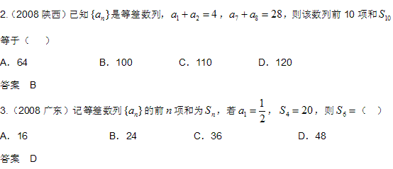 百度:历年高考真题考点归纳 2008年 第六章 数列 第一节 等差数列、等比数列的概念及求和