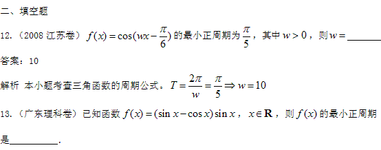 有道:历年高考真题考点归纳 2008年 第四章 三角函数及三角恒等变换 第二节 三角函数的图像和性质及三角恒等变换