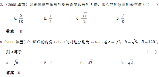 百度:历年高考真题考点归纳 2008年 第五章 平面向量、解三角形 第二节 解三角形