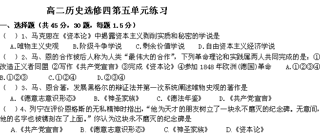 谷歌:新人教选修四《中外历史人物评说》:《无产阶级革命家》复习课件+单元测试