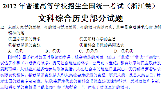 百度:2012年高考真题——文综(浙江卷)历史解析版