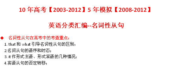 谷歌:10年高考《2003-2012》5模拟《2008-2012》英语分类汇编--名词性从句