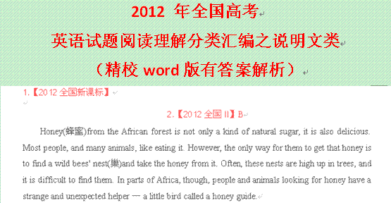 百度:2012 年全国高考英语试题阅读理解分类汇编之说明文类