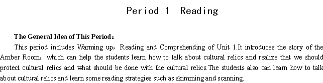 百度:高中英语优秀教案:Unit1 Cultural relics Period1 Reading(新人教版必修2)