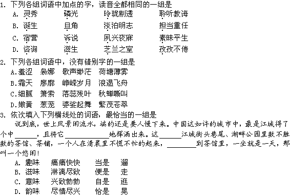 有道:2012年高考真题——语文(湖北卷) word版无答案