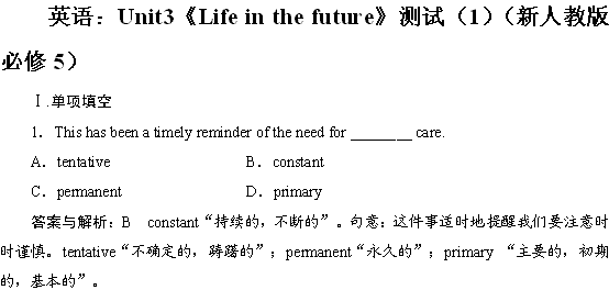百度:高二英语测试题:Unit3 Life in the future(1)(新人教版必修5)