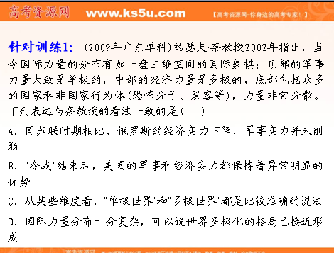 谷歌:2013届广东岳麓版一轮复习历史辅导课件 必修1 第27课 跨世纪的世界格局