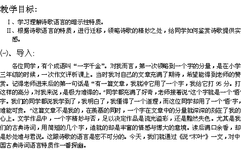 有道:江苏省连云港市灌云县四队中学高中语文苏教版必修五《说“木叶”》教学设计