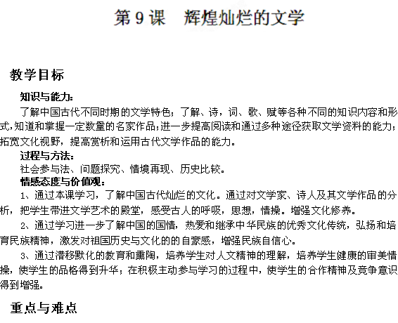 有道:湖南省蓝山二中2012高二历史《第9课 辉煌灿烂的文学》教案(岳麓版必修3)