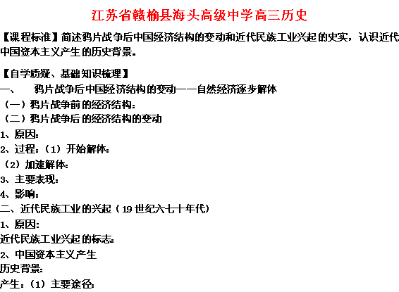 百度:江苏省赣榆县海头高级中学高三历史《专题二 近代中国资本主义的曲折发展》学案(1)