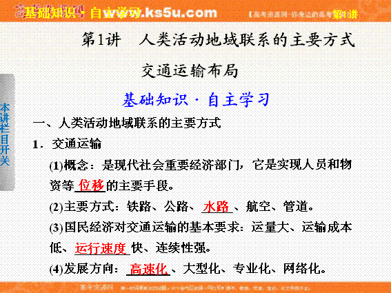 谷歌:2013届高考鲁教版地理一轮复习课件:必修二第四单元 第1讲 人类活动地域联系的主要方式 交通运输布局
