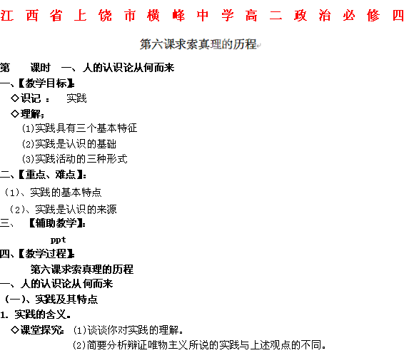 有道:江西省上饶市横峰中学高中政治《求索真理的历程》学案 新人教版必修4