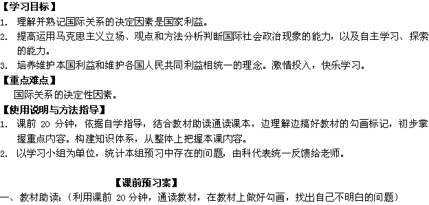 有道:广东省惠阳一中实验学校高一政治《8.2我国处理国际关系的决定因素:国家利益》学案