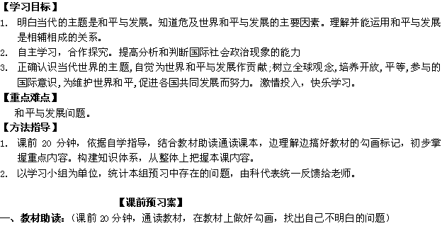 有道:广东省惠阳一中实验学校高一政治《9.1和平与发展:时代的主题》学案