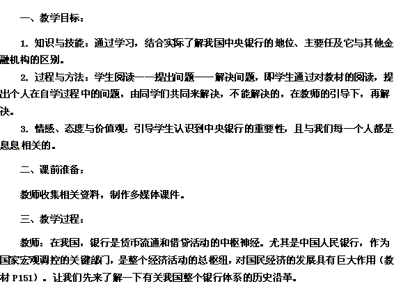 有道:沪教版高一政治教案 5.2.1《中央银行的地位》2