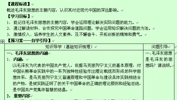 谷歌:人民版高二历史学案 必修三专题四第二课 毛泽东思想的形成与发展